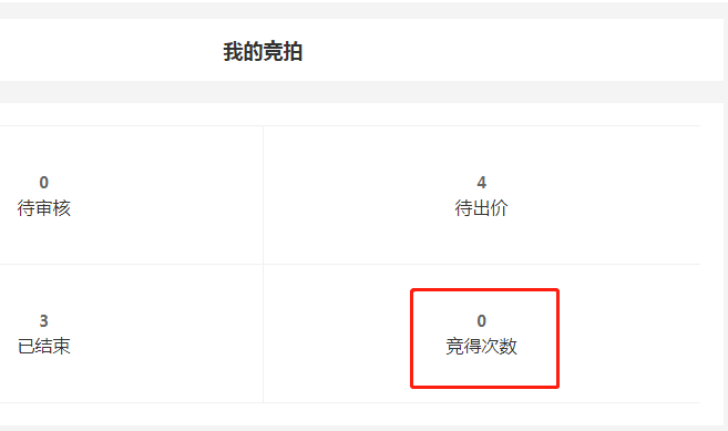 竞标结束后,在“会员中心”里查看竟得次数,如果中标,竟得次数会有显示数字,没有中标则显示“0”